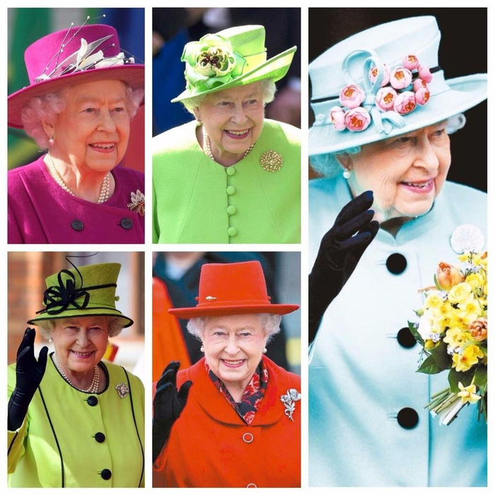 女王的外套总是色彩斑斓,原因是为了吸睛,她曾说:“我若穿米色,谁会认得我。”她穿得无比鲜艳,是为了吸引大众注意,让人们在人群中一眼就看到她。女王常穿大胆的颜色,要归功于她的私人助理安吉拉•凯利(Angela Kelly)。英国礼仪顾问公司的资深督导黛安娜•玛沙(Diana Mather)说:“女王爱明亮色系,我要说,很适合她。”