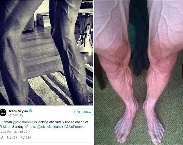 据医学专家研究表明,自行车手腿上的脉纹与他们腿中流动的大量血液有关。在环法自行车赛中,他们会进行高强度运动,导致大量血液积到腿部静脉中,使得血管膨胀。来自昆士兰大学生物医药科学院的布拉德利•劳利克尼斯( Bradley Launikonis)博士说,专业自行车手的血流量是其他娱乐型运动者的两倍,“训练完后,他们的血管就显露出来了。血流在大动脉中以高度调节的形式增压流动,他的腿长时间挤入高血量,血液积在血管里,所以突起才那么明显。但这只会发生在专业车手身上,娱乐型运动者不会这样。”(实习编译:王曦 审稿:田瑞哲)
