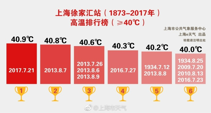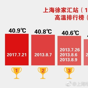 高温猛于虎!昨天是今夏第15个高温日、第9个酷暑日(最高气温≥37℃)。徐家汇站最高气温达40.9℃(下午14时左右仅维持4分钟),直接打破了2013年40.8℃纪录,成为徐家汇站145年的气温最高值。