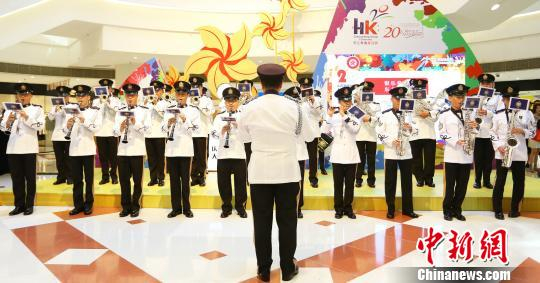 中新网重庆7月22日电 (记者 韩璐)《狮子山下》、《中国人》、《回归颂》、《红日》……22日,香港警察乐队首次来到重庆,在大都会东方广场奏响乐曲,庆祝香港回归20周年。当日,香港警察乐队音乐总监梁宝根警司接受中新网记者专访,向内地民众介绍这支来自香港的“音乐使者”。