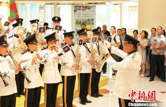 图为7月22日,香港警察乐队首次来到重庆,在大都会东方广场奏响乐曲。 钟欣 摄