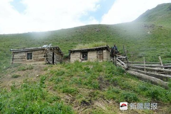 7月20日,乌鲁木齐县板房沟乡夏牧场,努尔波拉提的简易木屋。