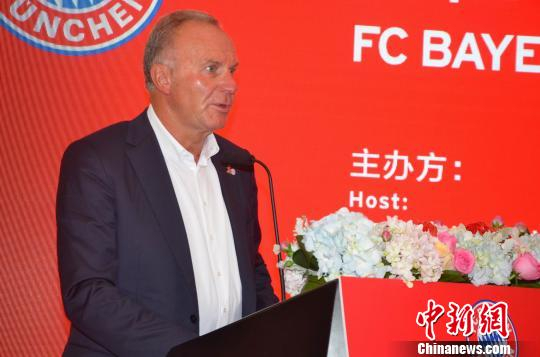 拜仁慕尼黑股份公司董事会主席卡尔-海因茨·鲁梅尼格致辞。 郑小红 摄
