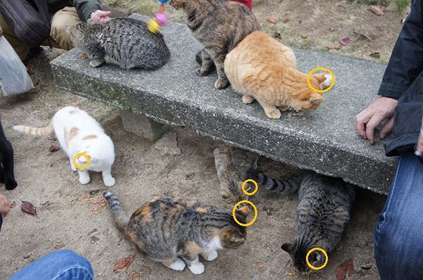 濑户内海著名的“猫之町”广岛尾道,大部分栖居的野猫都接受了不妊去势手术,左耳被剪出一个“V”字,是接受手术的辨识标志。