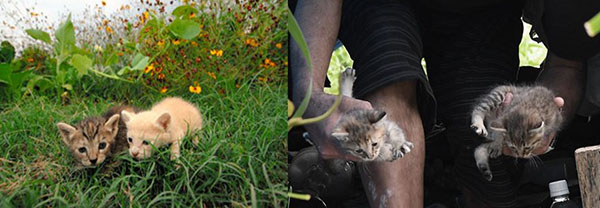 对于多摩川的流浪猫而言,人类的威胁还是其次,最大的敌人还是变幻莫测的大自然,而每年夏季台风与暴雨是其最大的噩梦,撞上雨季至少要死去和失踪1/4。上图为2015年7月、2017年6月洪水过后被救助的“喵星人”幼崽。