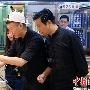 孙红雷享受香港美食 黄磊女人街变“李小龙”