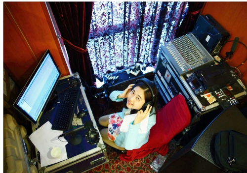 两会期间,李欣蓉来到演播室做节目,显得很兴奋。