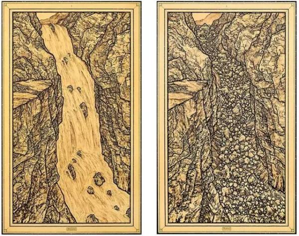 展览将首次集中展示艺术家于2013年至2017年间绘制的20件精选金色绘画,作品植根于传统水墨画,也在西方绘画中撷取灵感,虚构的设定与风景构成了此系列绘画的核心——超现实的构图中呈现瀑布、树木和石头,同时也包含诸如门框或画布等室内元素。
