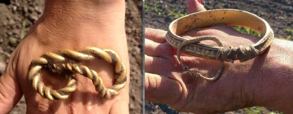 据丹麦方面本月公布的最新消息,在南日德兰半岛一处田野中发掘出了维京时期的黄金饰品,是迄今为止出土的规模最大也最为珍贵的公元950年左右的维京时期的宝藏,做工精细,文物的总数量和艺术价值使此次发掘的意义极为深远。这一发现归功于3名丹麦业余考古爱好者,他们称其行动为“公民科学”,其践行的民间考古调查行动,获得了专业学者和考古学家的指导。