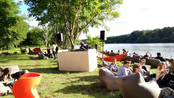 尽管展会选址较偏,位于远离市中心的施伯莱河畔,但开展那几日天气爽朗,很多人来到这里一待就是一整天,工作结束一边在河边小酌一边继续讨论可持续时尚的更多可能性。