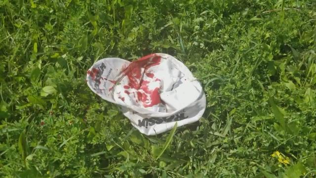在一旁的草地上,可以看到一顶白色的帽子,已经被血染红,路面上也有点点滴滴的血迹。