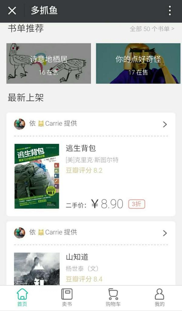 “多抓鱼”于2017年5月8日在北京上线,7月18日在上海上线。截至记者发稿时,“多抓鱼”已有15000名微信关注用户,入库的图书有8000本,卖出库的图书有5000本。