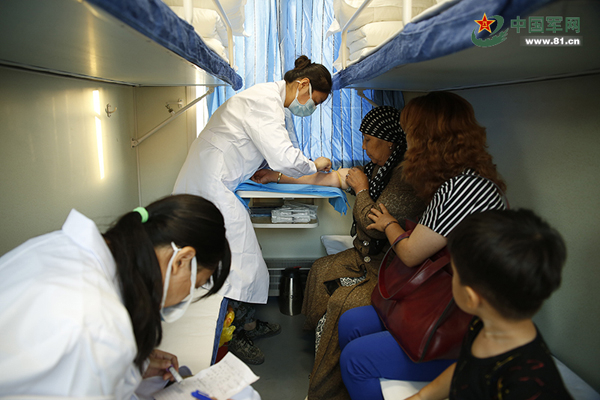 医护人员在卫生列车上开展为民服务活动。