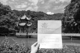 湖南大学的录取通知书设计元素上主打岳麓书院,封面右侧为岳麓书院正门的实景特写,左侧用线条勾勒出岳麓山作为背景,与中南大学的通知书有异曲同工之处。折页上采用水墨点染的方式,渲染出御书楼的实景,两侧镌有岳麓书院正门的楹联“惟楚有材,于斯为盛”。封底呈现出的是岳麓讲堂的实景。