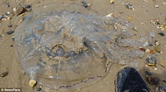 英海滩大量巨型水母搁浅