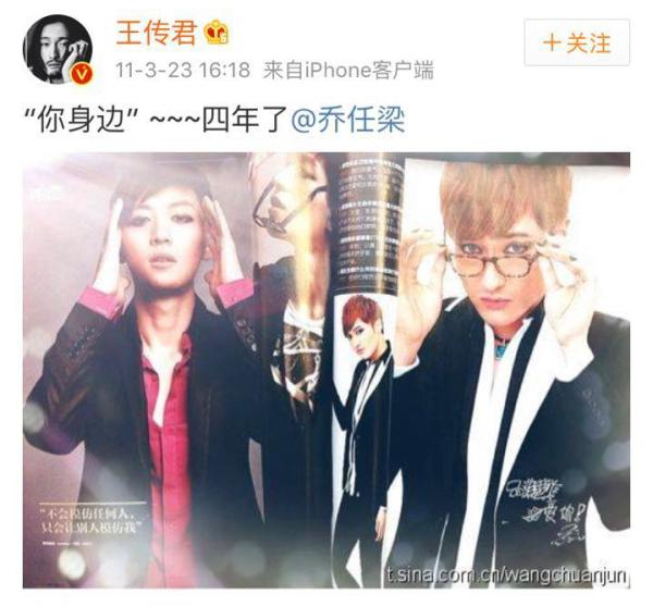 此前在微博上王传君与乔任梁多有互动。