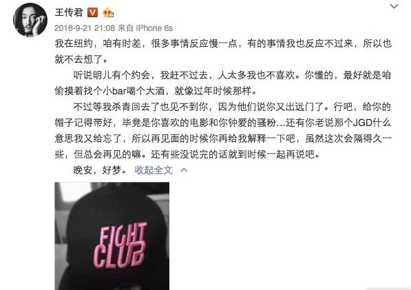 乔任梁在2016年9月16日身故。21日,王传君发表长微博悼亡友。