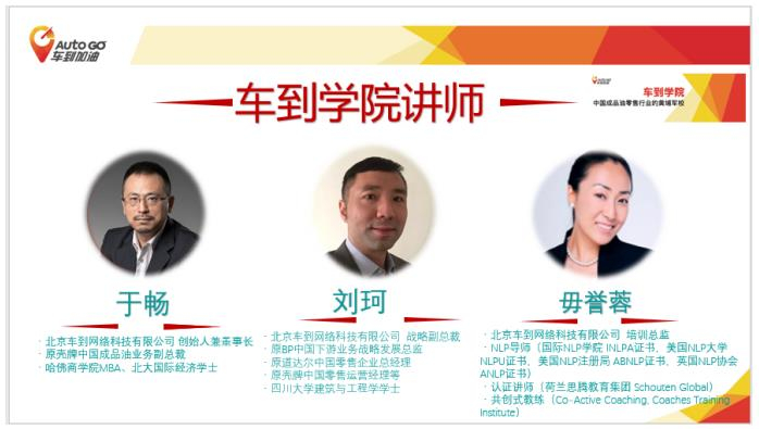 车到旗下的专业培训机构车到学院成立于2017年初,旨在打造成品油零售行业人才培养的黄埔军校,帮助合作油站提高运营和管理水平。车到学院讲师团队汇聚了拥有丰富成品油零售行业经验的资深专家,致力于为加油站行业从业人员提供全面、系统、专业的能力提升解决方案,培训内容涵盖油站员工岗前培训、油站经理培训等岗位培训、以及销售与运营、品牌建设、非油品管理、人员绩效管理等专业能力培训,车到学院的成立为成品油零售行业的发展奠定了人才储备。