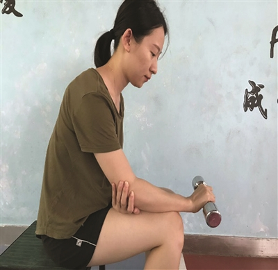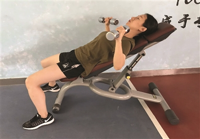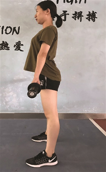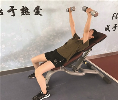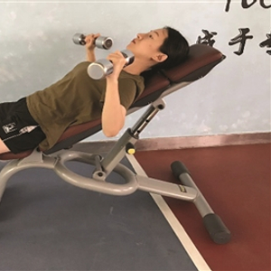 用力方式:利用肩关节前屈和肘关节伸展将哑铃推举到肩关节的斜上方。根据个人情况每组重复8-10次,重复2-3组。