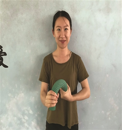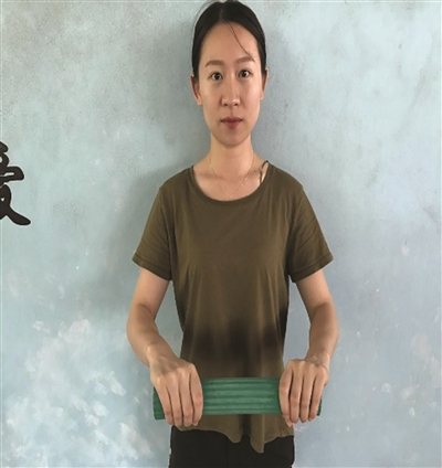用力方式:双手同时用力拧转弹力棒。根据个人情况每组重复8-10次,重复2-3组。