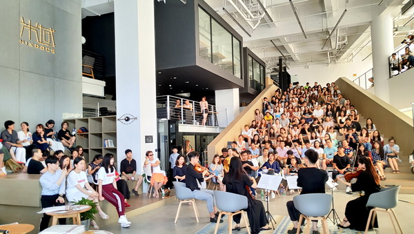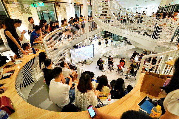 有别于传统音乐会,这台音乐会不管是主题还是曲目安排,都巧妙地蹭了《四重奏》“热点”,很自然就获得了话题和关注度。而在视觉包装、场地选择、观众体验上,它也做到了颠覆——演出场地极具艺术感,舞台和观众席之间没有界限,观众不用正襟危坐,可坐可站还可拍照,互动氛围一流。