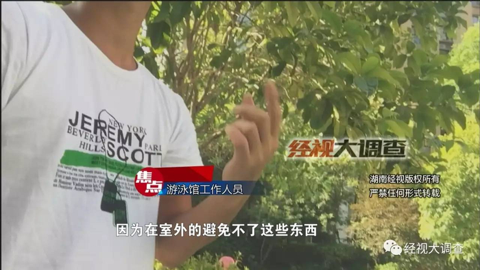 面对室外40度的高温,对于会游泳的人来说,泳池应该是个不错的“避难所”!不过,游泳场馆里的水真的干净卫生吗?有市民向经视大调查投诉,在长沙县高档小区凤凰城三期的游泳池里,常漂着一些爬虫和杂质油污,游泳池里的水有些浑浊,让人难以放心。这家游泳馆的卫生情况究竟怎么样呢?