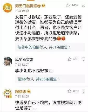 7月22日,一段广州市快递员向一名女客户下跪道歉的视频传遍了网络。