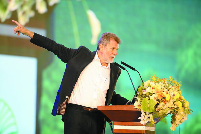 原来,它们同属于热带姜目植物!它们如何与动物共同进化?7月24日大会开幕日上午,一场题为“人类时代的热带植物-动物相互作用的协同进化”的主旨报告在会展中心四号厅举行。这场精彩的主旨报告来自于美国知名植物学家约翰·克雷斯(John Kress)。约翰·克雷斯在美国史密森尼国家自然历史博物馆任植物学家已近30年。