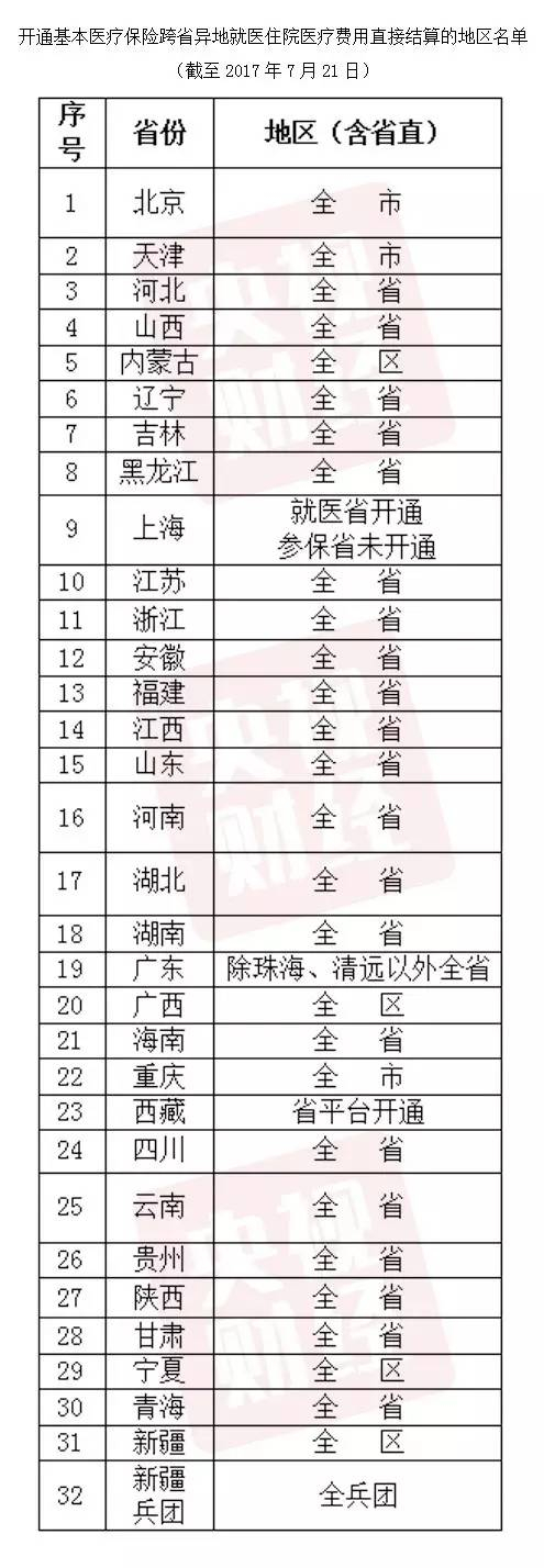 实时在线查询最新地区及定点医疗机构开通情况
