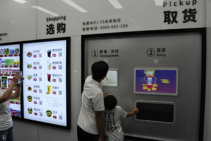 采访当日,市民袁女士带着儿子过来体验F5未来商店。小朋友看到未来商店很兴奋,立马要合影留念。袁小姐表示,她更喜欢传统便利店。“无人便利店面积较小,而且还没人指引排队,人一多就会显得很混乱。”另外,她也更信任传统便利店的熟食,“你可以亲眼看到食物的制作过程,会比较放心。”