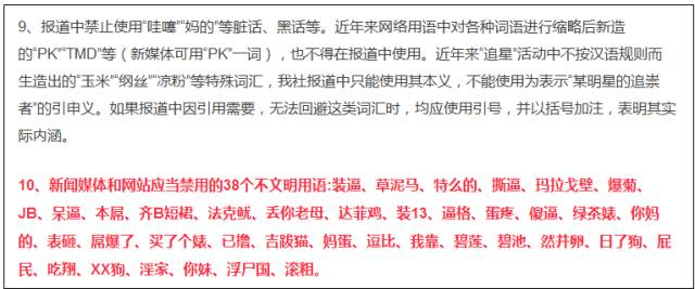 新闻媒体和网站应当禁用的不文明用语有38个,