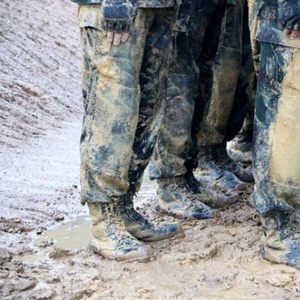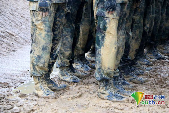暴雨中,特战士兵进行格斗训练后裤腿沾满泥。中国青年网记者周学磊摄