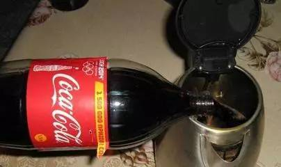 将可乐倒入水壶里面,放上一天,能清除水壶里面的残垢,让内部变得清洁。