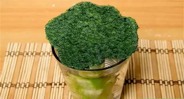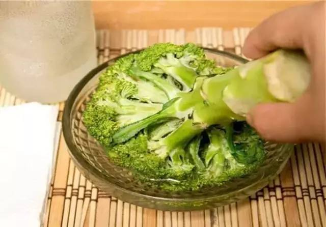 将西兰花的头尾放入水中,然后取出用厨房纸巾印干水分。