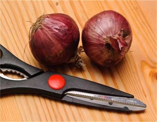 首先用剪刀去除洋葱干枯的地方,还有根部。