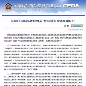 近日,国家食药监总局发布《关于15批次防晒类化妆品不合格的通告》称,经检测,标示为广州德芙化妆品有限公司、路威酩轩香水化妆品(上海)有限公司和广州澳希亚实业有限公司等13家企业生产(代理)的15批次防晒类化妆品不合格。已要求所有化妆品经营企业对不合格产品一律停止销售,相关生产(代理)企业对已上市销售相关产品及时采取召回等措施。