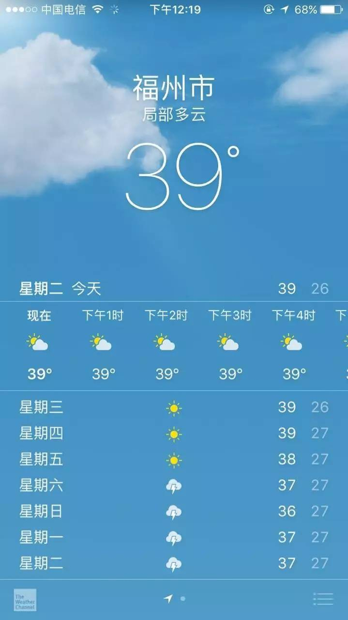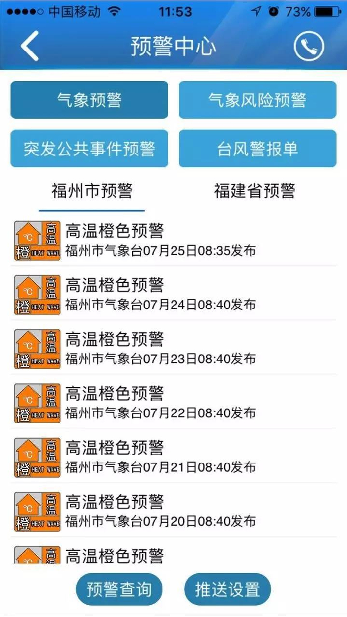 家住福州市鼓楼区安泰街道的刘女士说,打开“知天气”APP就收到由福州市气象台发布的高温橙色预警信号,根据“知天气”的逐时预报,她获悉安泰街道未来两小时温度仍超过36℃,于是她做好充分的防暑防晒工作后才出门。