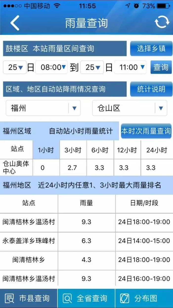 记者打开“知天气”APP,在首页选择福建-福州,点开福州,有五区七县(市)的可以选择,点击仓山区,可以具体到仓山区以下的每个乡镇的实时天气,非常方便。