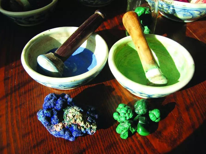 彩绘时使用的颜料都是由陈春甫使用天然矿物自制而成。