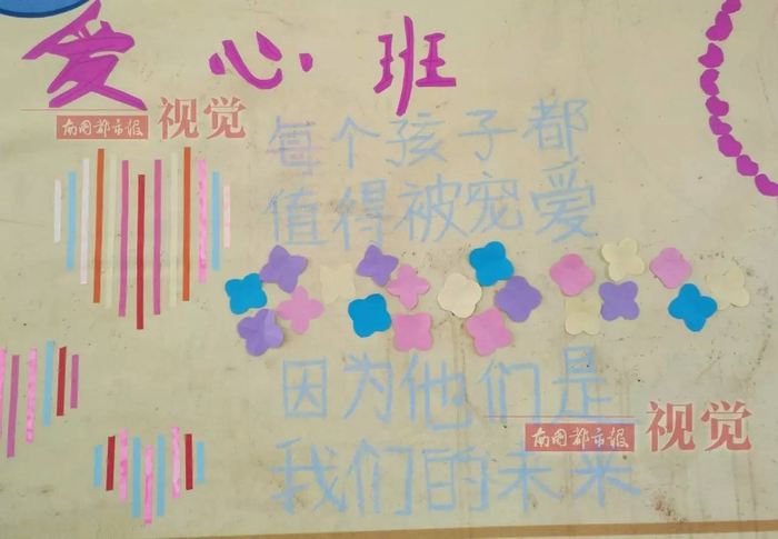 在墨桥小学一年级的教室里,后面的黑板上写着:每个孩子都值得被宠爱,因为他们是我们的未来。