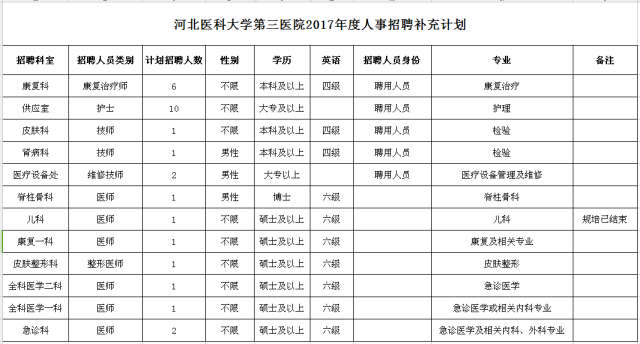 6、河北医科大学第三医院招聘部分专业技术人员