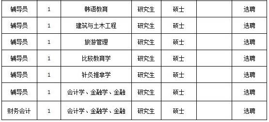 公开选聘专任教师16名、专职辅导员11名、财会人员1名,要求全日制统招硕士研究生及以上学历应往届毕业生,获得硕士及以上学位,专业与所设岗位要求专业相同。