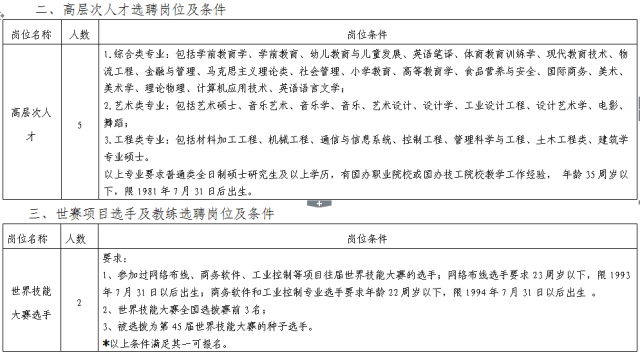 (二)应聘岗位具体条件