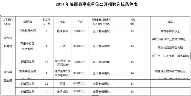 1、具有临西县及邢台市辖区户籍(2017年毕业生户籍不限;在临西或邢台市辖区三支一扶服务期满人员特设的报考岗位户籍不限;具有双学士学位及硕士研究生户籍不限);
