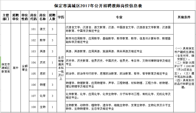 11、保定市满城区公开招聘教师