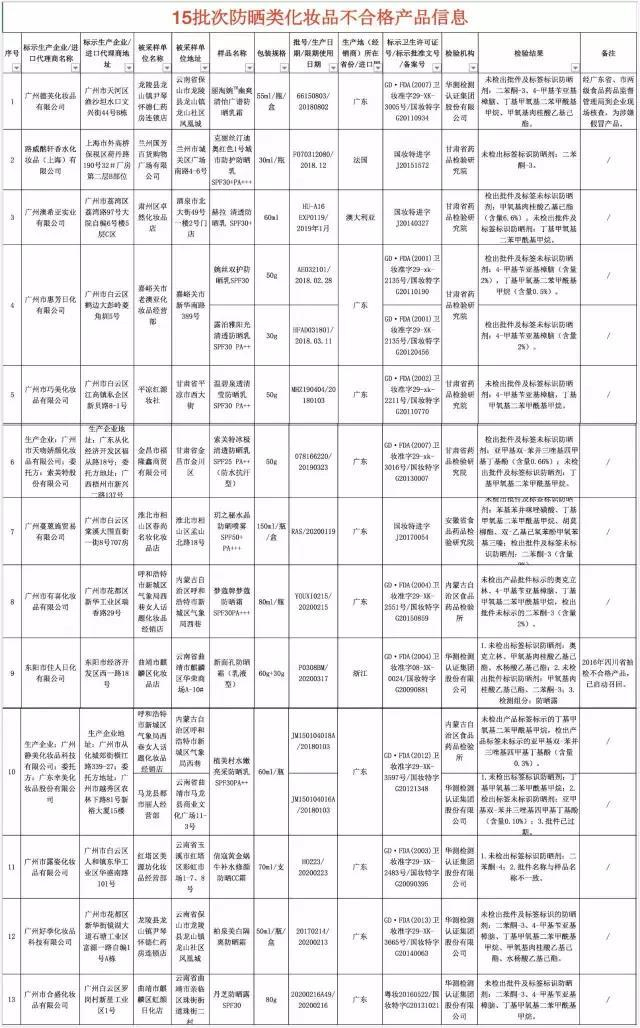近日,国家食药监总局发布《关于15批次防晒类化妆品不合格的通告》称,经检测,标示为广州德芙化妆品有限公司、路威酩轩香水化妆品(上海)有限公司和广州澳希亚实业有限公司等13家企业生产(代理)的15批次防晒类化妆品不合格。