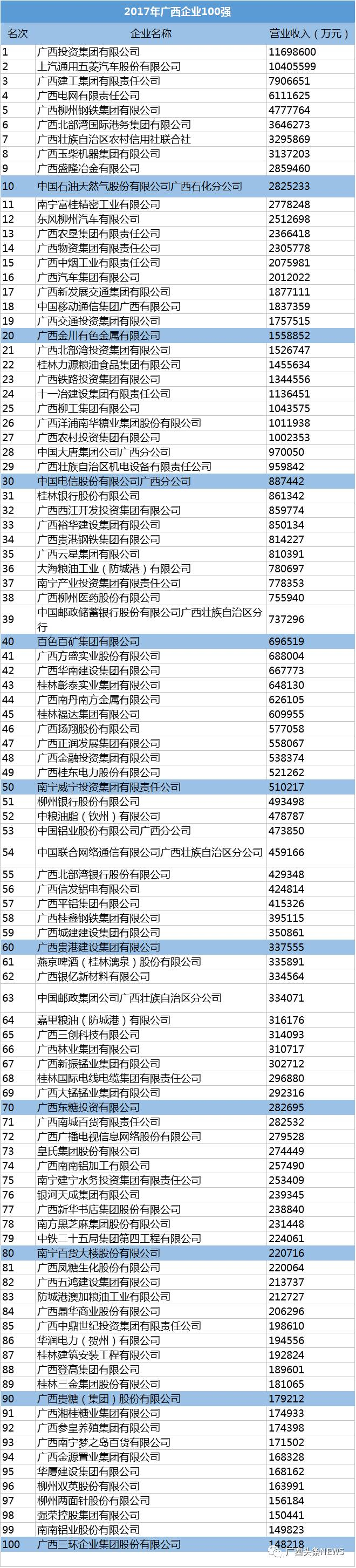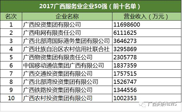 7月26日,广西企业与企业家联合会公布2017广西企业100强、2017广西制造业企业50强、2017广西服务业企业50强、2017广西民营企业50强等一系列榜单。