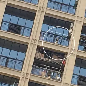 周日下午1点,我刚来上班,听到狗狗叫得厉害,我以为它被护栏卡住了。没过多久我看它可以退回去的,我以为没什么事,谁知道1点半再去看,狗狗卡在阳台上不行了,头低下来了。