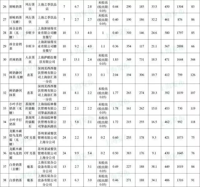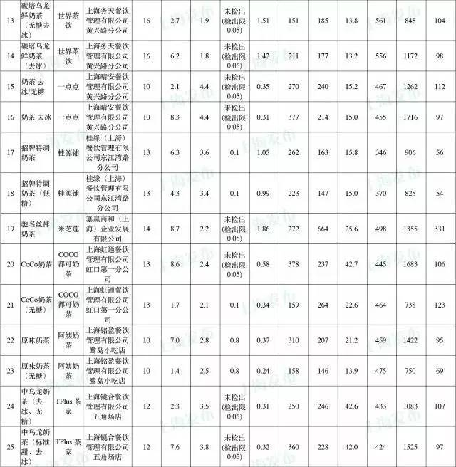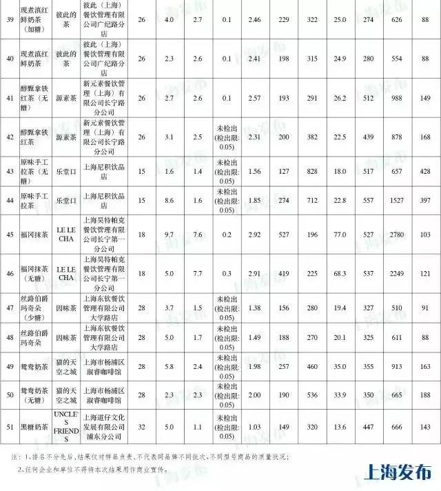 此次检测在上海27家奶茶铺中,共购买了51件奶茶样品,选择的规则主要是询问并购买每家店铺中最畅销的一种奶茶,包括一份正常甜度的和一份无糖的或者最少糖的,且均不加冰的奶茶。