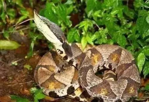 尖吻蝮系一种剧毒蛇,相传被这种蛇咬后不出五步就会昏倒,所以又称“五步倒”。